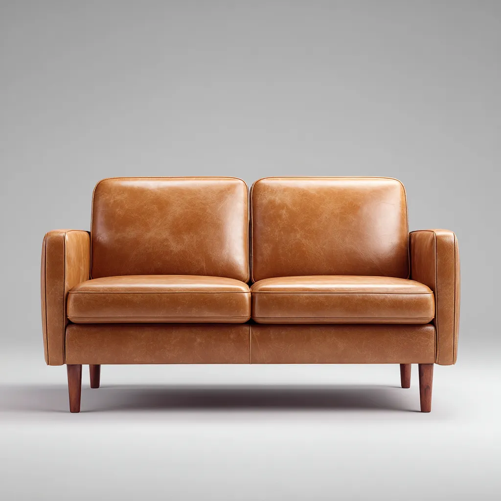 Zweisitzer Sofa-Leder-Holz-172x86x80 cm-Braun-Klassisch Modern